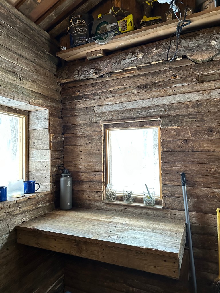 We’ve been asked what we’re going to now do with the cabin, but its purpose was, and is, a fun hobby project. Erik enjoyed working on it during a slower season and figuring out solutions to construction challenges as he went. The warm winter that we had was very conducive for being able to work in the evenings, and our neighbors would stop by to watch its progress. Erik does have plans to expand – such as building a small front porch and an outdoor cooking area – and it will be exciting to see to see what happens next!